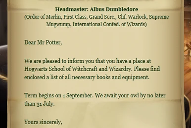 Hogwarts Acceptance Letter The Harry Potter Compendium Fandom